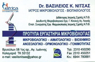 ΝΙΤΣΑΣ ΒΑΣΙΛΕΙΟΣ - ΠΡΟΤΥΠΑ ΕΡΓΑΣΤΗΡΙΑ ΜΙΚΡΟΒΙΟΛΟΓΙΑΣ